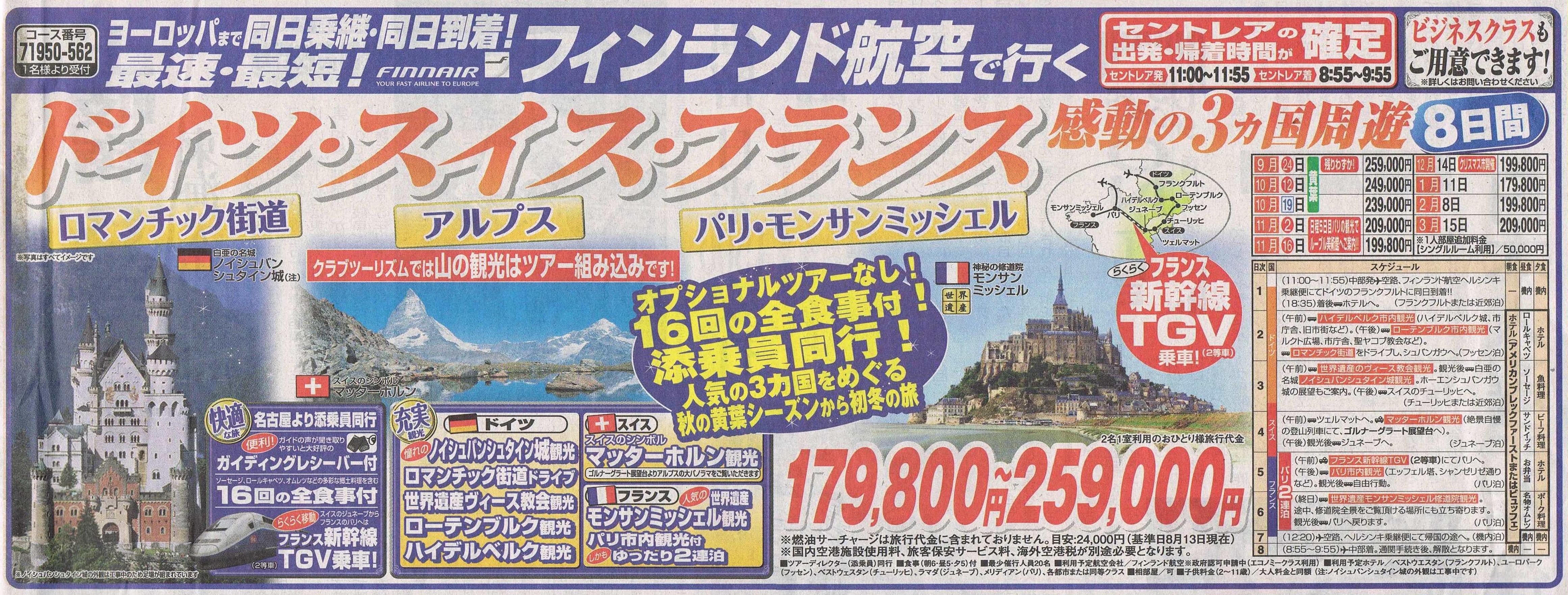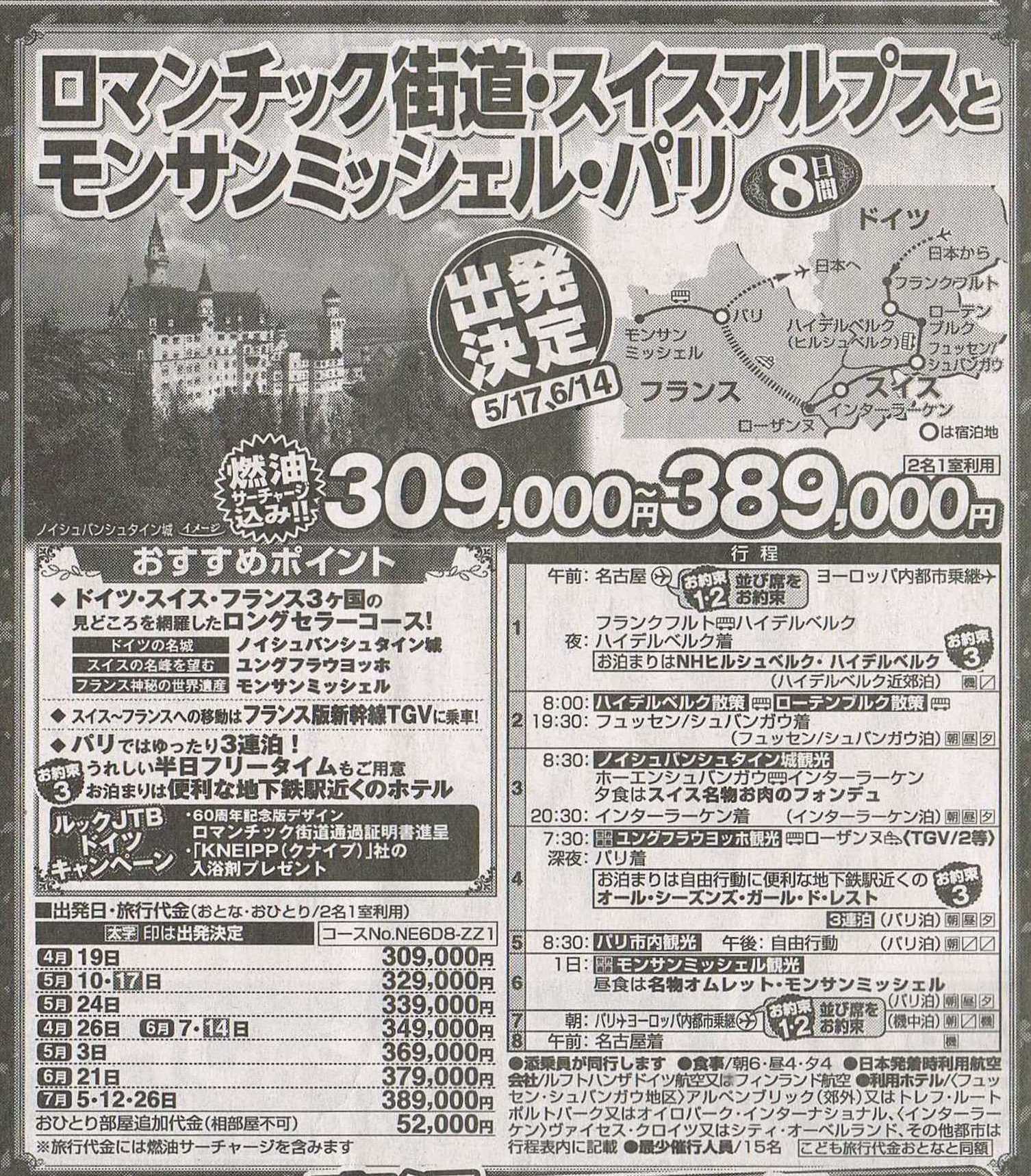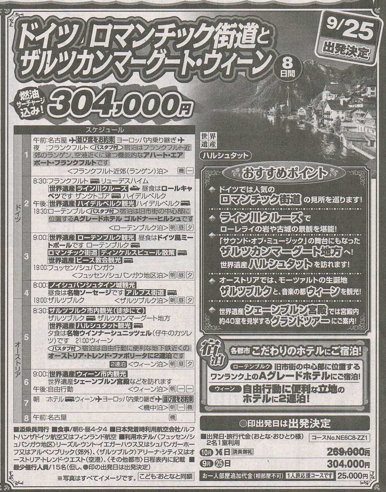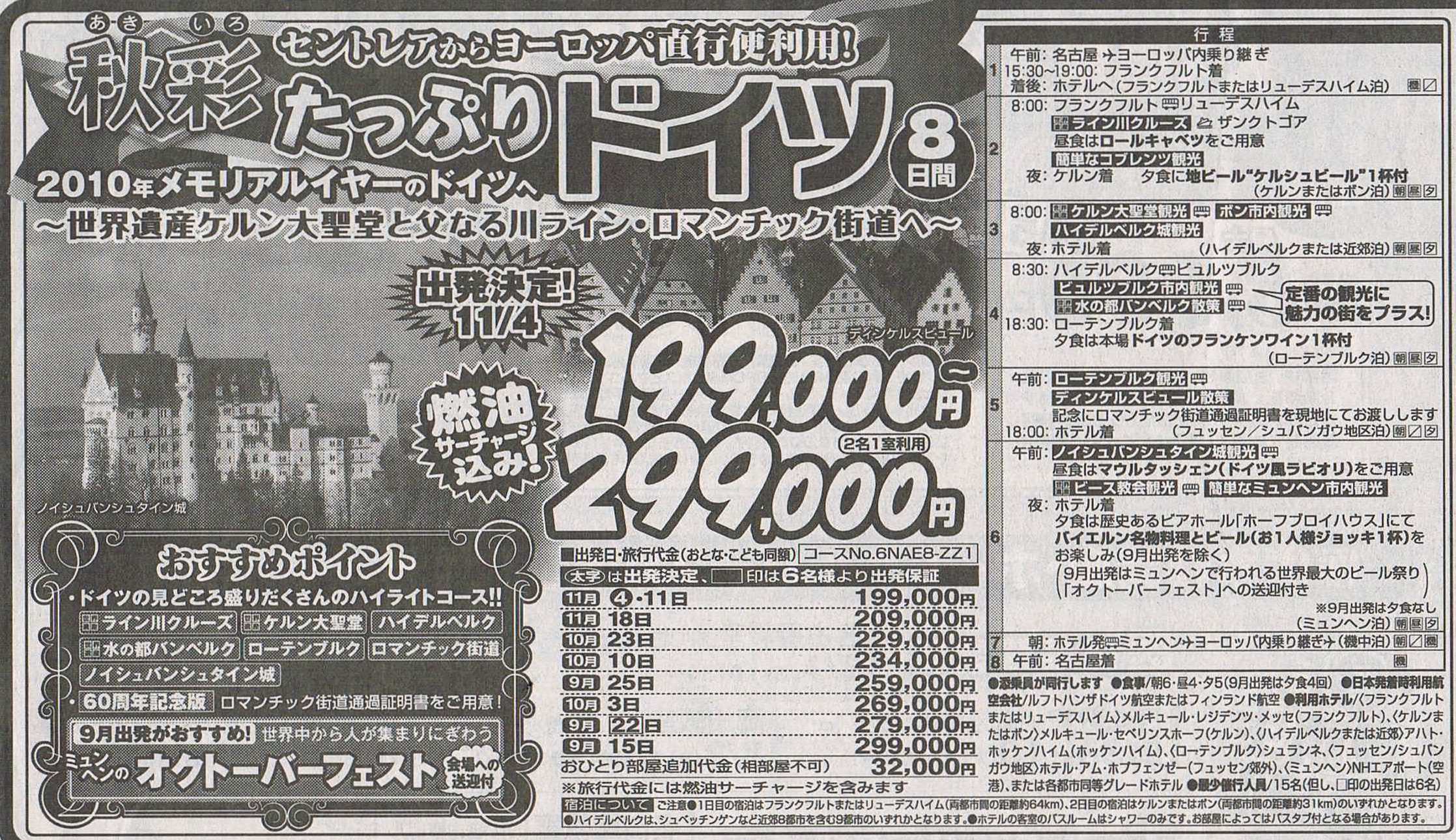 8 | 6 | 11/04 | 03/30 | 149,800 | 01/06 | 249,800 | 12/30 | 40,000 | ドイツ 中欧 いいとこどり |