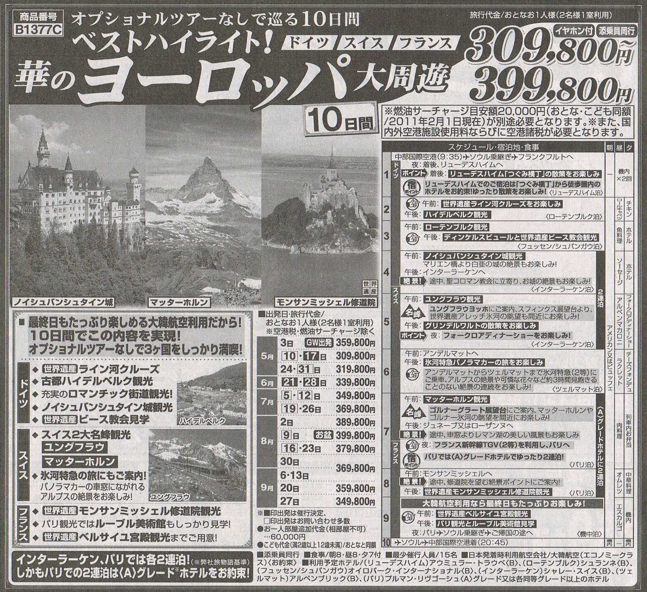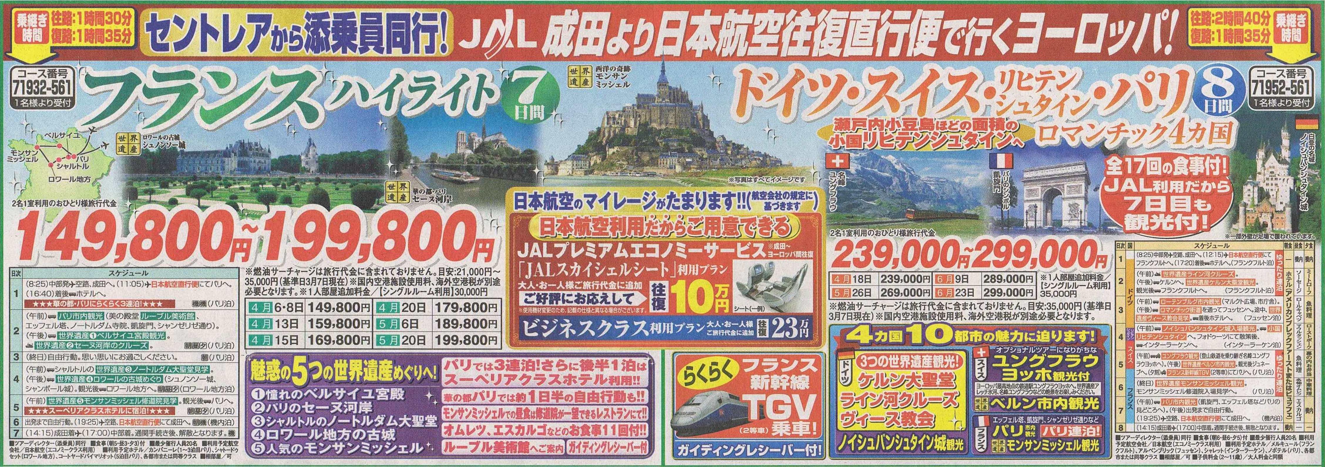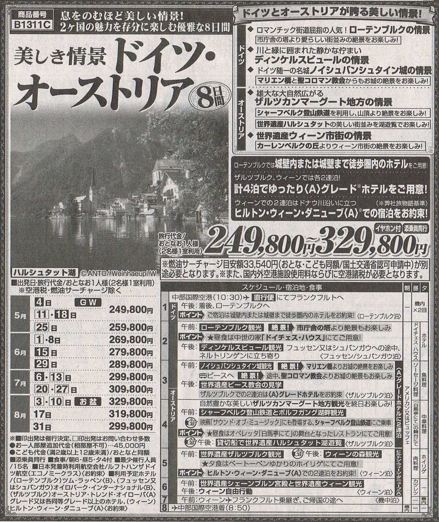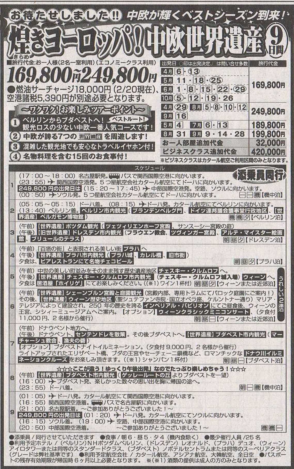 8 | 6 | 11/04 | 03/30 | 149,800 | 01/06 | 249,800 | 12/30 | 40,000 | ドイツ 中欧 いいとこどり |