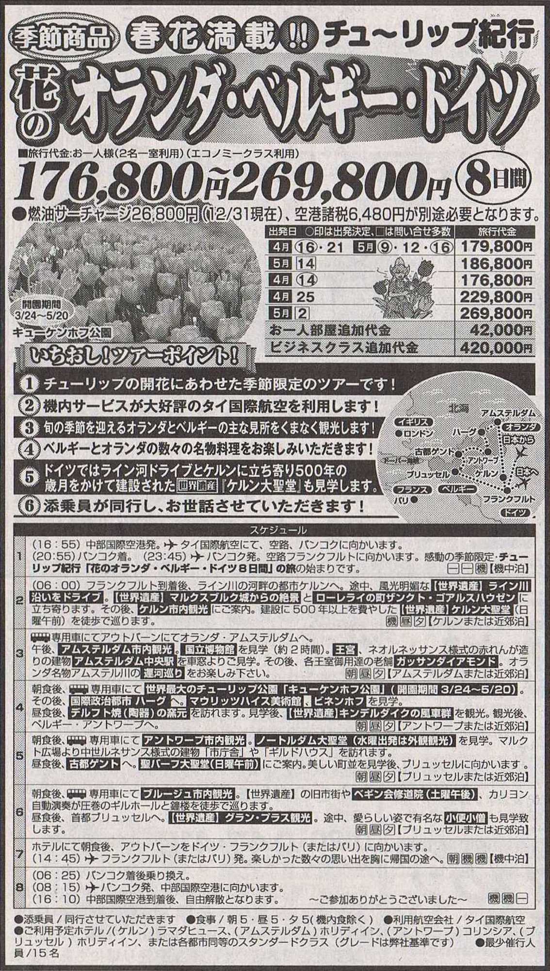 8 | 6 | 04/08 | 08/15 | 239,800 | 04/08 | 369,800 | 04/29 | 60,000 | キューケンホフ公園満喫 |