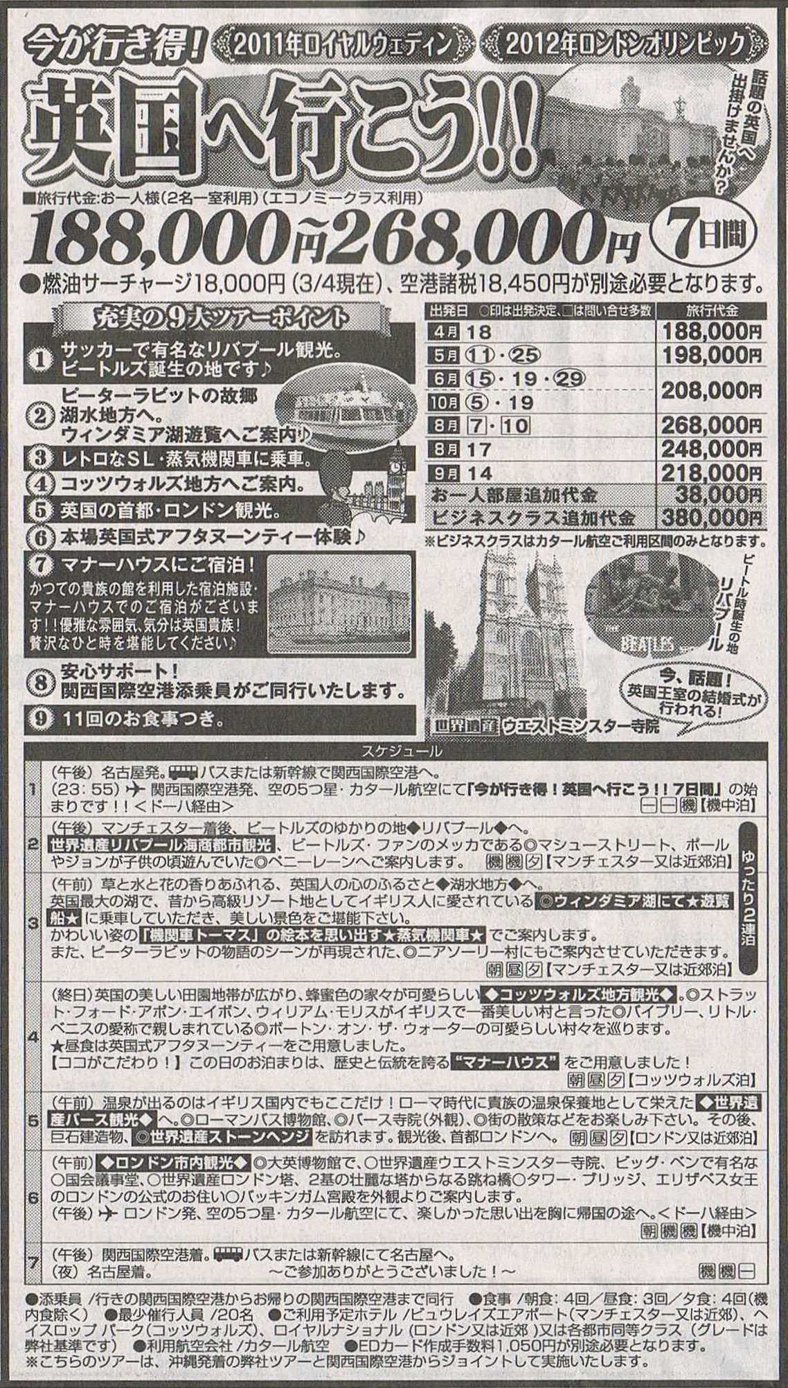 8 | 6 | 11/01 | 03/27 | 159,800 | 01/03 | 299,800 | 12/27 | 50,000 | Liverpool London 連泊 |