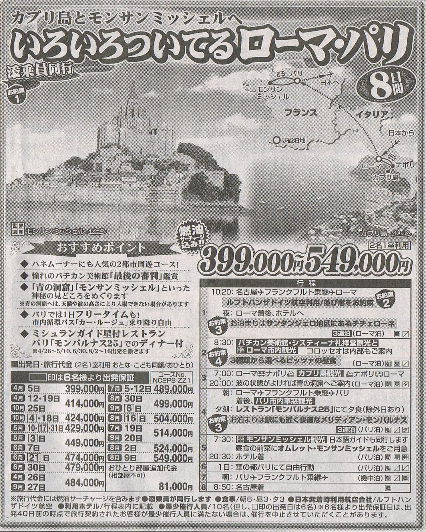 | → CalmTrip → 新聞広告に見る ヨーロッパ旅_名古屋発 → 終了分 |