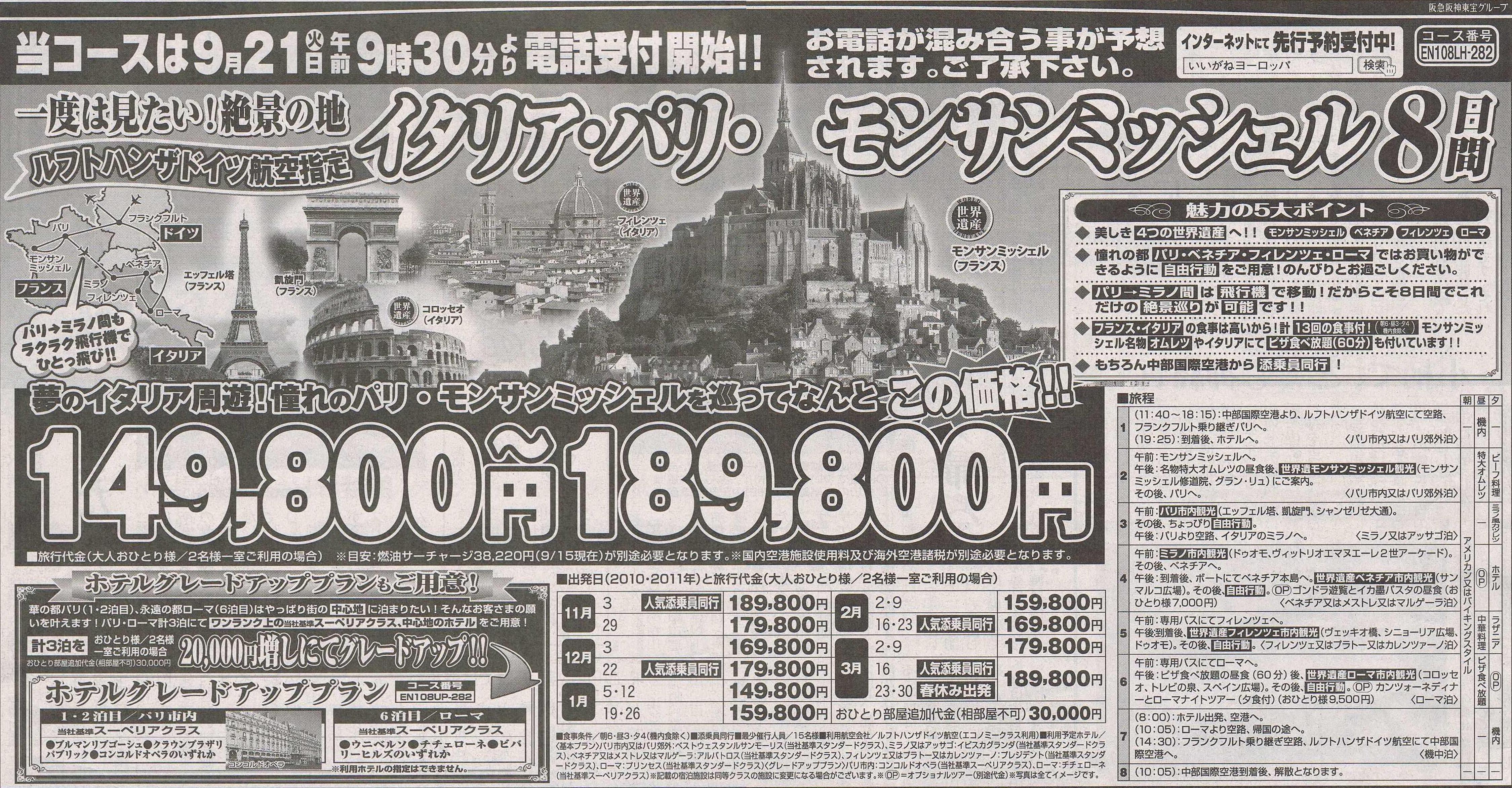 | 中日新聞 に掲載された Europe 旅 から抜粋 | |||||||||
