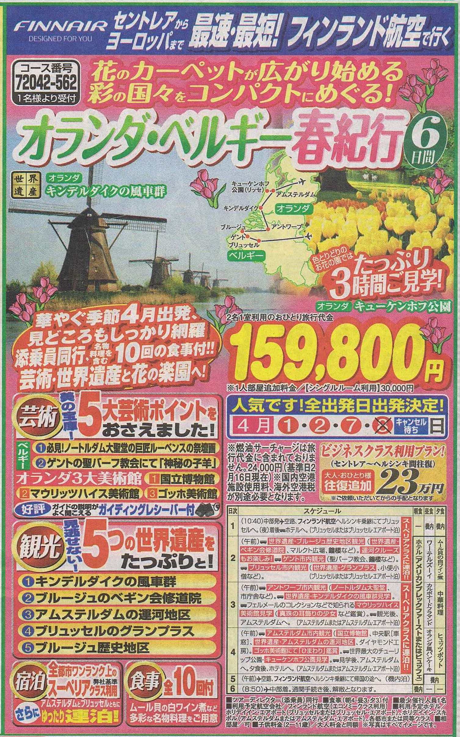 8 | 6 | 04/04 | 05/15 | 199,800 | 04/04 | 299,800 | 04/27 | 35,000 | ブリュセル アムステルダム 2連泊 |