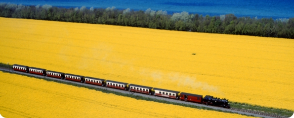 �面白いことに蒸気機関車は町の中心部の通りを走ります。 ハイリゲンダムは、メクレンブルクの大公が1793年に海水は健康によいと言うので開いたドイツ最古の海浜リゾートです。 終点のキュールングスボルンはメクレンブルク最大の海浜リゾートです。ハイリゲンダムから美しい浜を6キロ歩くのも健康によいかもしれません。 モリィ鉄道の蒸気機関車が古い車両を引っ張り、美しい景色を楽しみながらすばらしい体験ができます。片道6.2ユーロ、団体は15名以上一人5.8ユーロ。 料金は片道25ユーロ。