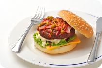 Dining』としてご提供しています。(9~11月) 洋食・和食のコースメニューとあわせてお楽しみください。 また、国際線定期便就航25周年の感謝を込めて、かつての人気メニュー、「チーズとベーコンのバーガー」を期間限定(9~11月)で復活いたしました。 アミューズやオリジナルパフェなどオリジナリティあふれるメニューをご用意してお待ちしております(2011年10月23日申し込みまで)。 ビジネスクラスをおトクにご利用いただける「スーパービジ割」運賃もぜひご利用ください。