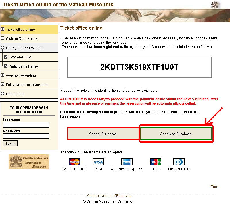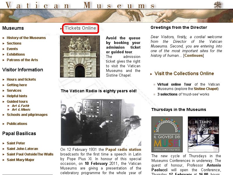 | ① | Vatican Museumse 公式 Sites にアクセスする <Tickets Online>を クリック。 |