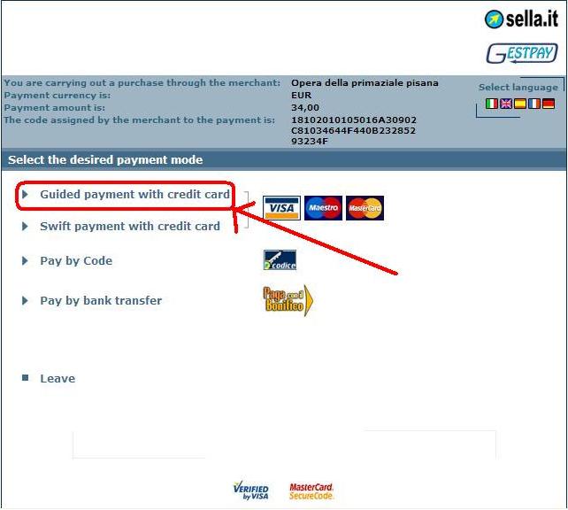 | ⑨ | 支払い情報 入力 画面が表示されるので、支払い方法を選択する。。 Credit Card の場合<Guided payment with credit card> を Click する。 |