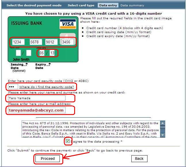 | ⑬ | Credit Card 情報 を 入力し、<Proceed>を Click! | ||||||