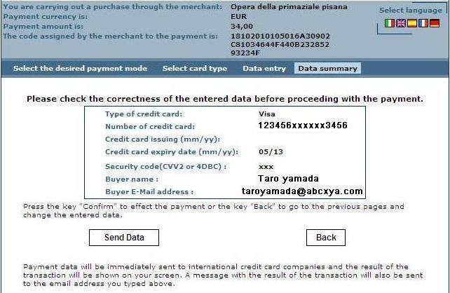 | ⑭ | 支払い 入力内容 確認面画が、表示される。 正しければ <Send Data>を Click する。 | ||||||
