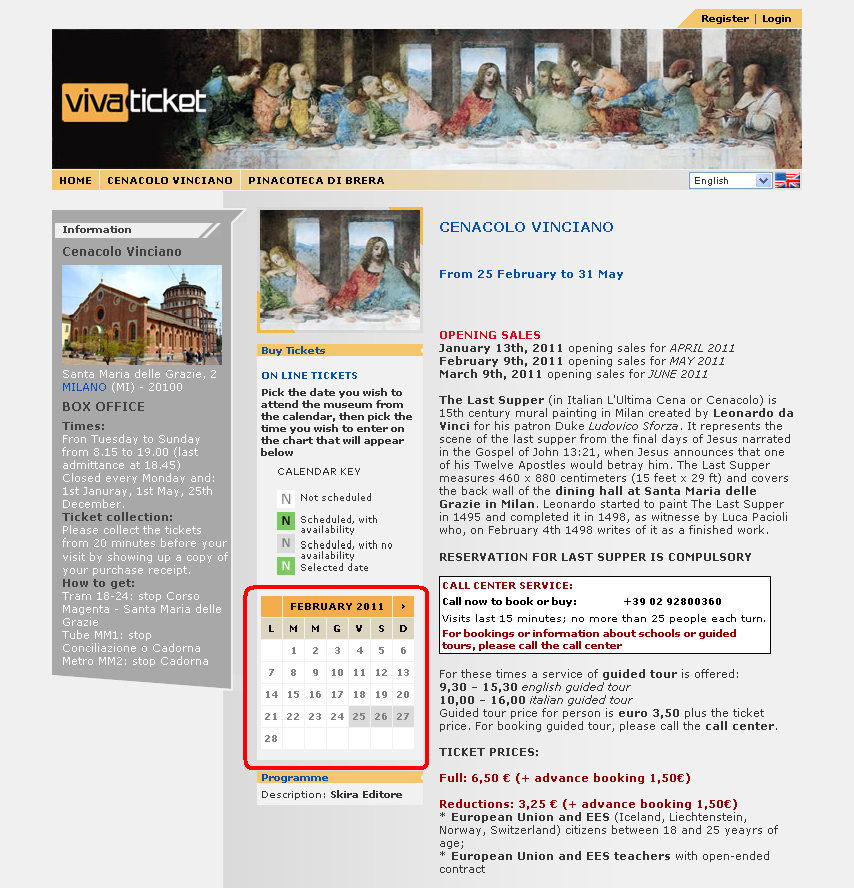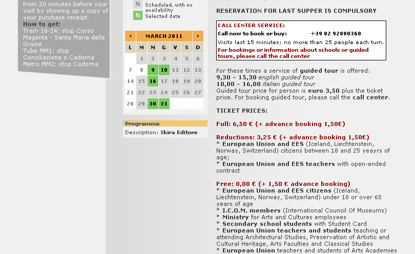 | → CalmTrip Top → 個人旅の 計画 → 美術館・コンサート 予約 → 例_最後の晩餐 鑑賞予約 |