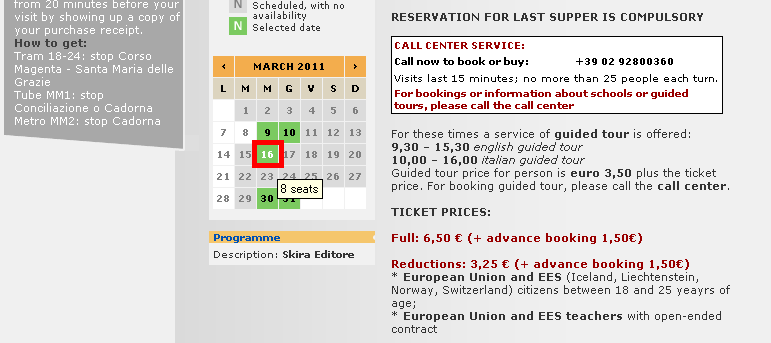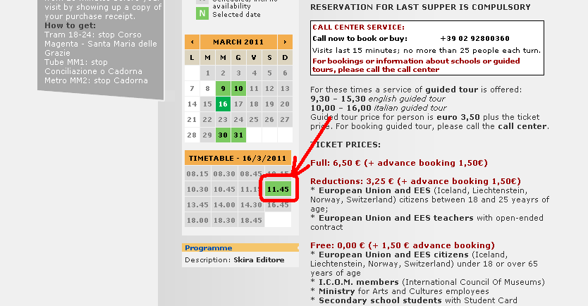 予約した入場時間の 1時間~30分前に、チケット受取る必要があります。 方法 → 斜塔 横のチケットオフィスにてバウチャーを提示し、パスポート番号を伝える。 |