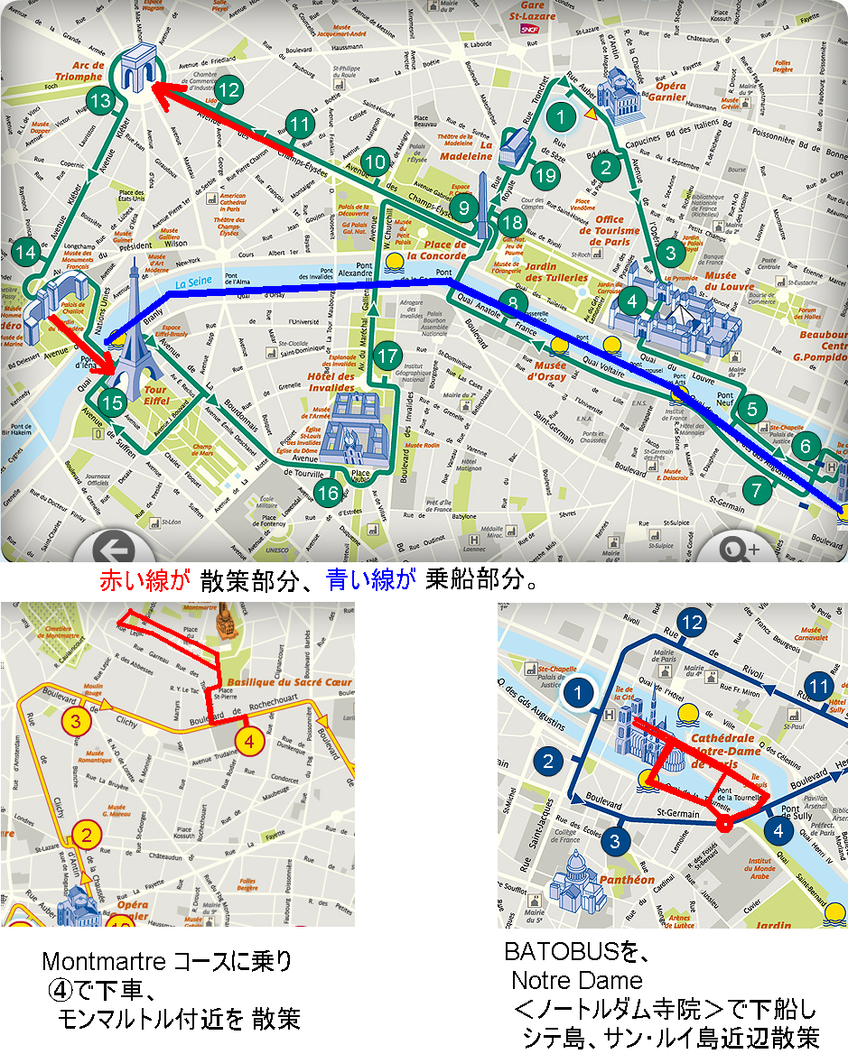 街歩きの、交通手段、美術館情報、散策コース等を掲載。 ● L'OpenTour a Paris<Open Tour パリ>Batobus<バトビュス> ● Metro、Bus、Mobilis<モビリス>Roissy Bus<空港Bus>Velib'<ヴェリブ> ● Paris Visite<パリ ヴィジット> ● Chateau de Versailles<ヴェルサイユ宮殿>へ ● 列車で行く Mont Saint-Michel<モン サン ミッシェル> ● Paris から、France列車で各地の 世界遺産 に行くには ● Paris ぐる~っと 一巡り、美術館巡り、散策コース、Marche |