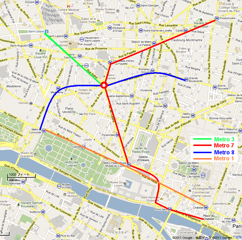 Saint-Lazare<サン ラザール>--Havre-Caumartin<アーヴル コーマルタン>--Opéra<オペラ>